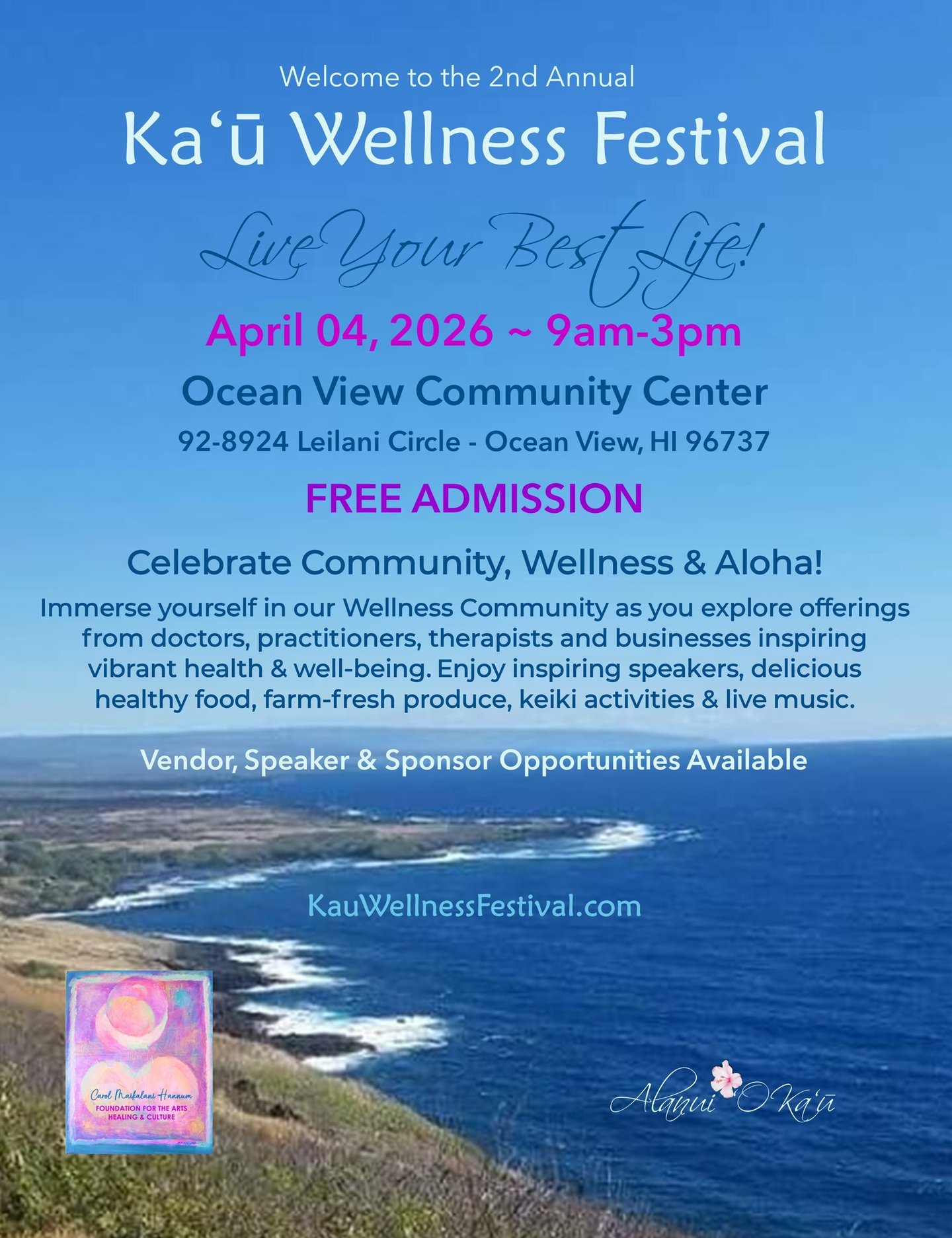 Join us for the 2nd Annual Ka'u Wellness Festival, a free community event celebrating holistic health and well-being.