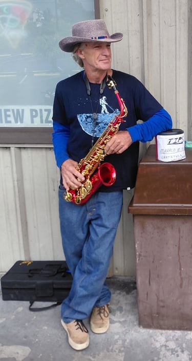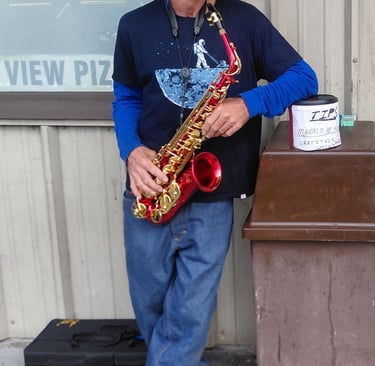 Music flows at the core of Tucker’s soul. As a child, he danced freely to its rhythm, even under watchful eyes. In 6th grade, he chose the saxophone—studying it passionately for six years until family finances ended that chapter abruptly, leaving a lasting ache. Thirty-five years later, a ruby-red alto sax named Ruby rekindled that flame. Musical memory intact, playing felt like riding a bike, reclaiming a vital piece of self. Connections through music now bless many lives in profound ways.